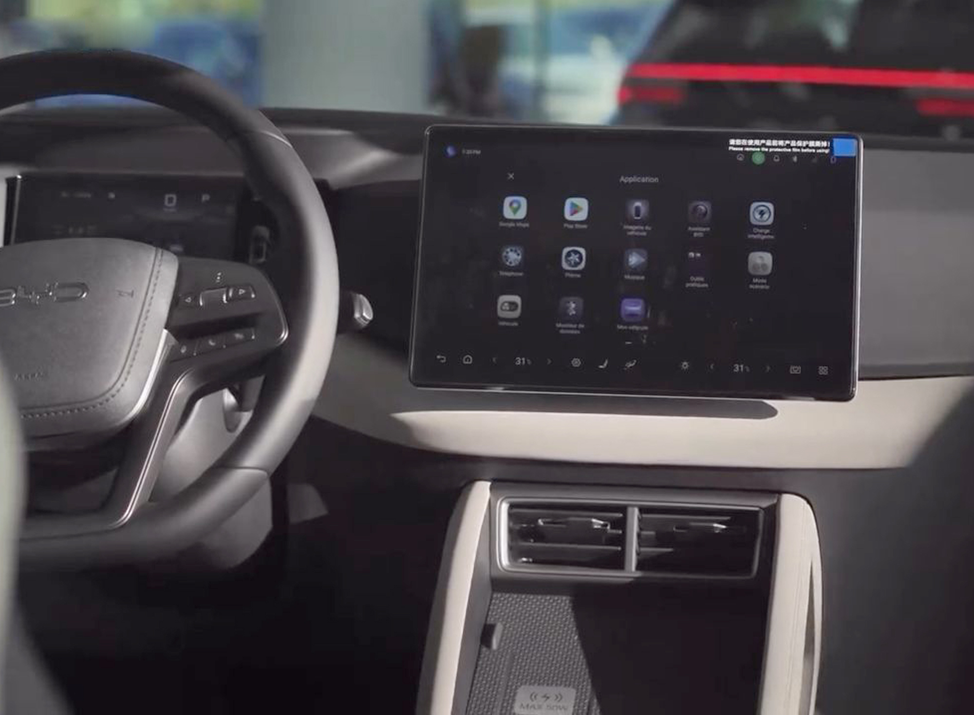 A l’intérieur, BYD mise sur une expérience technologique aboutie. L’élément central reste l’écran tactile rotatif de 12,8 pouces, devenu une signature de la marque. Il permet de passer d’un affichage horizontal à vertical selon les usages, une fonctionnalité qui reste rare sur le segment.