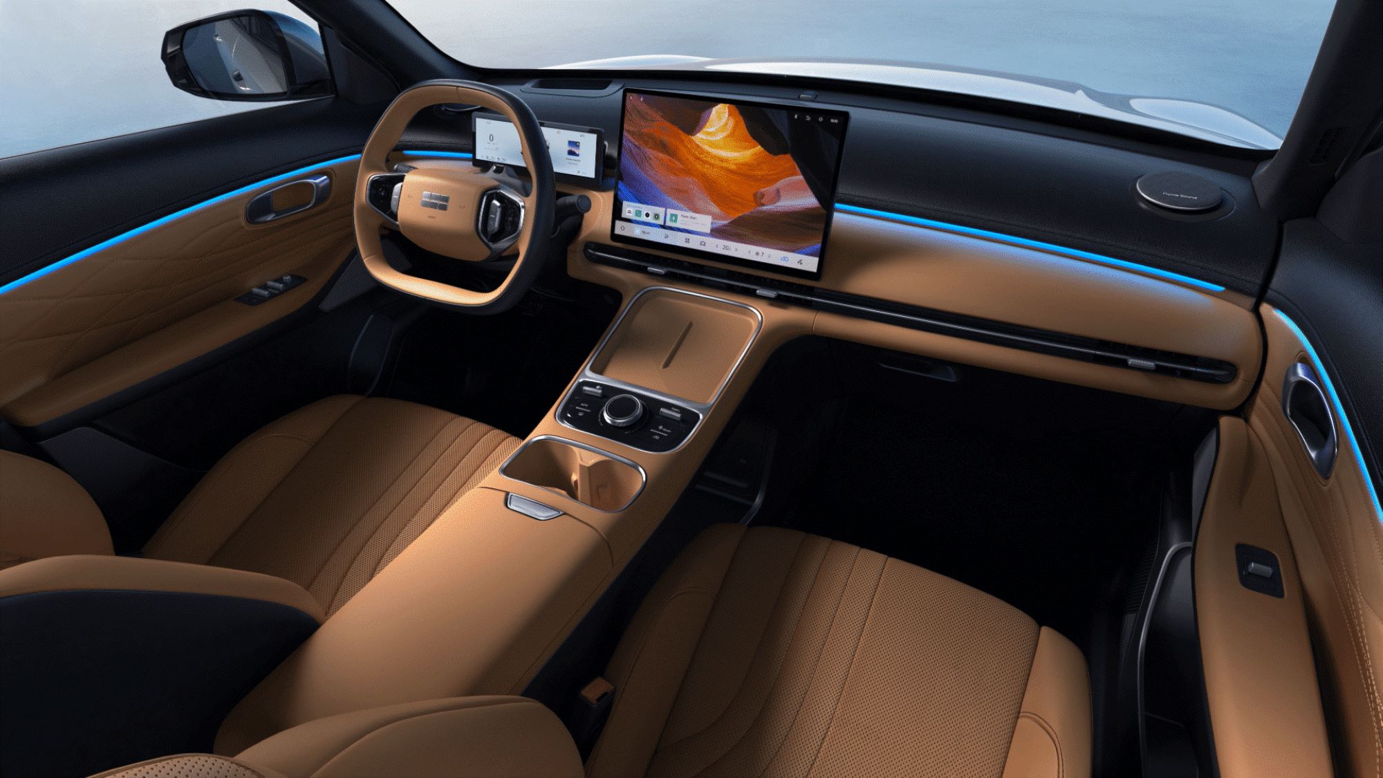 Barres de toit, Feu stop surélevé à LED, Feux arrière entièrement à LED, Feux de jour à LED, Hayon électrique, Jantes alliage 19 pouces, Phares automatiques à LED (avec fonction Follow Me Home), Rétroviseurs extérieurs chauffants, Rétroviseurs extérieurs rabattables électriquement, Rétroviseurs extérieurs réglables électriquement, Roue de secours à taille réduite, Toit ouvrant panoramique avec pare-soleil électrique, Vitres et pare-brise athermiques, Vitres arrière surteintées, Volant cuir multifonction, Accoudoir central arrière avec appuie-tête, Banquette arrière rabattable, Climatisation automatique, Commande à distance des vitres (y compris toit ouvrant), Eclairage d’ambiance 256 couleurs, Eclairage du coffre, Liseuses à l’avant et à l’arrière à LED, Lève-vitres électriques avec fonction une touche (montée/descente), Pare-soleil avant avec miroirs de courtoisie et éclairage, Rétroviseur intérieur électrochrome, Sellerie en Eco-cuir perforé, Siège conducteur à réglage électrique 6 positions, Siège conducteur avec fonction mémoire, Siège conducteur ventilé, Siège passager à réglage électrique 4 positions, Sorties d'air arrière, Système de régénération d’énergie au freinage, Aide au démarrage en côte (HAC), Airbags frontaux, latéraux et rideaux, Alerte de circulation transversale arrière (RCTA), Alerte ouverture de porte (DOW), Assistance au freinage (BAS), Assistant de changement de voie (LCA), Assistant de maintien dans la voie (LKA), Commutation automatique des feux de route (IHBC), Contrôle de descente (HDC), Contrôle de traction Geely (G-TCS), Contrôle électronique de stabilité (ESC), Coupure d’alimentation de sécurité en cas de collision, Détection d’angle mort (BSD), Fonction Auto Hold (AVH), Fixations Isofix sur sièges arrière, Frein de stationnement électrique (EPB), Freinage automatique en marche arrière (RCTB), Freinage d’urgence automatique (AEB), Lecture des panneaux de signalisation (TSI), Régulateur de vitesse intelligent (ICC), Répartition électronique de la force de freinage (EBD), Système d’atténuation de collision arrière (CMSR), Système d’atténuation de collision avant (CMSF), Système de freinage antiblocage (ABS), Affichage tête haute (W-HUD), Chargeur sans fil, Connexion Bluetooth, Ecran central HD 15,4 pouces, Ports USB (2 Type-A & 2 Type-C), Prise 12V à l’avant, Système audio Flyme Sound à 16 haut-parleurs, Système Geely avec Apple CarPlay, Tableau de bord LCD 10,2 pouces, Rappel de ceinture avant/arrière, Alarme anti-intrusion, Alerte de faible vitesse pour conduite électrique, Alimentation externe V2L (Vehicle-to-Load), Alimentation inter-véhicules V2V (Vehicle-to-Vehicle), Caméras panoramiques 540°, Démarrage sans clé et accès mains-libres, Dispositif d’ouverture d’urgence du coffre, Enregistreur d’événements, Radars de stationnement avant/arrière, Recharge programmée, Surveillance de pression des pneus (avec affichage digital, TPMS), Système antivol électronique, Verrouillage automatique des portes avec détection de vitesse, Verrouillage de sécurité enfant mécanique, Système de régénération d’énergie ajustable.
