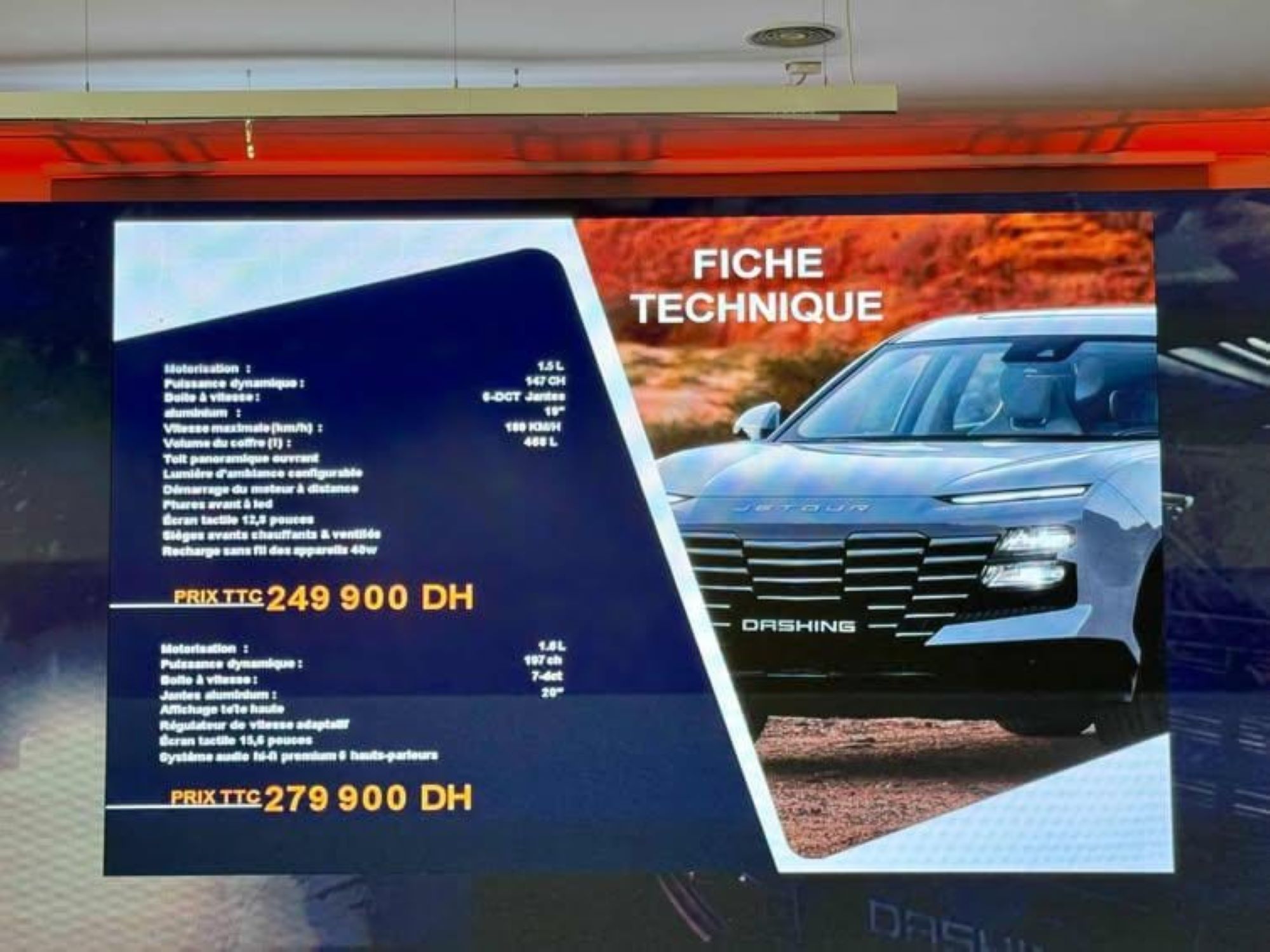 Dans la continuité du T2, le lancement du Dashing vient consolider la gamme et affiner le positionnement de Jetour sur le segment stratégique des SUV. Plus urbain et résolument contemporain, le Dashing cible une clientèle jeune, attentive au design et aux équipements technologiques.